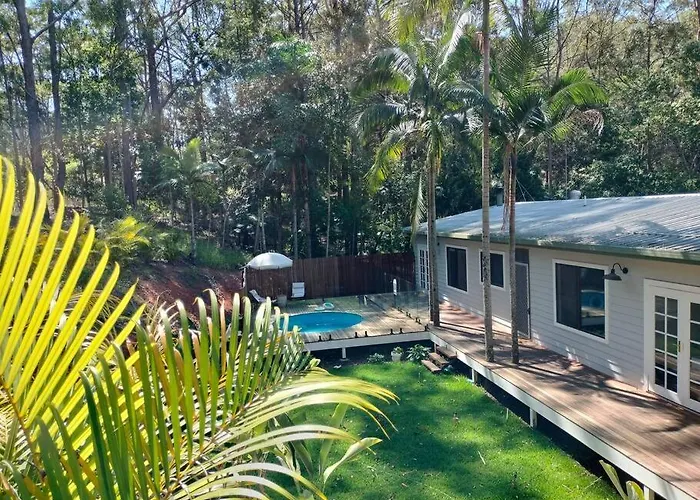 De 2-slaapkamer Ilkley Bush & Beach Retreat Eudlo villa heeft een zwembad voor de ontspanning van de gasten en ligt op 15 minuten rijden tot The Shed @ Forest Glen. Dit vakantiehuis biedt uitzicht op het zwembad en nodigt gasten uit om het Aussie World te bezoeken, op 7 km verderop.